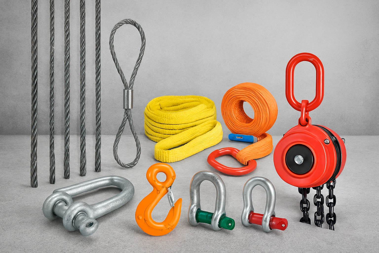 Cabos de aço, lingas, cintas, talhas e acessórios para elevação, amarração e movimentação de cargas — tudo voltado para uso industrial, naval e construção.
